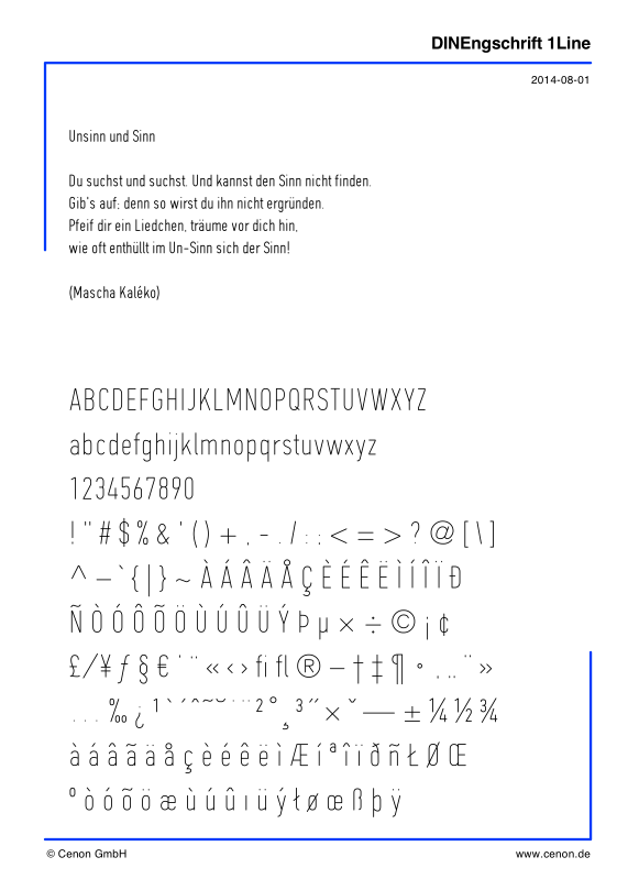 DINEngschrift 1 Line (einlinige CAM-Gravurschrift)