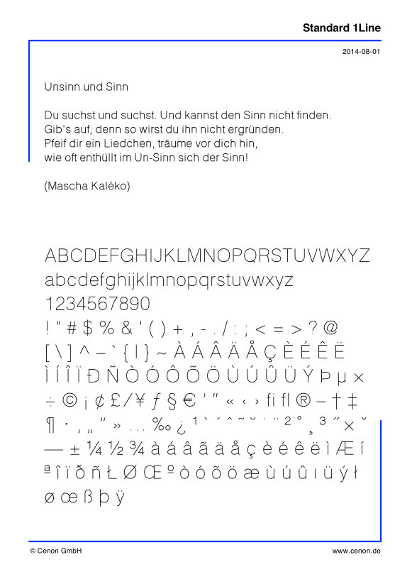 Standard 1 Line (einlinige CAM-Gravurschrift)